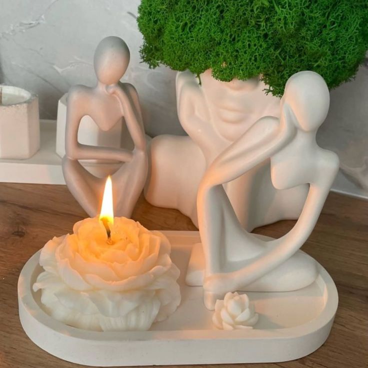 Combo #1 3 PIEZAS Vela peonia Grande - Est Pensante - Bandeja Ovalada chica